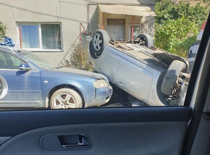 Accident pe o stradă din Cluj! O maşină s-a răsturnat (FOTO)