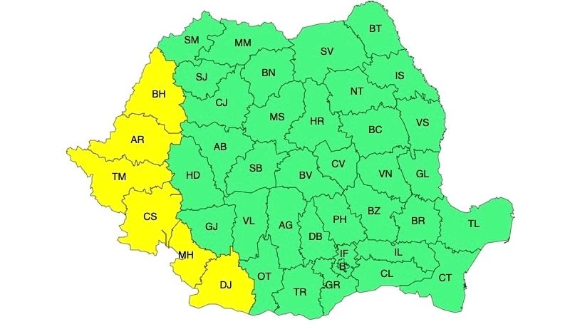 În Banat, cea mai mare parte a Crișanei, precum și în sudul și vestul Olteniei, valorile termice se vor menține deosebit de ridicate pentru această dată. Temperaturile maxime vor fi cuprinse în general între 32 și 34 de grade.