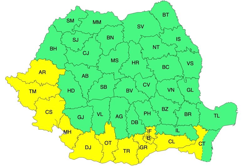 Joi (21 august) în Banat, sudul Crișanei și al Olteniei, sudul și centrul Munteniei precum și în sud-vestul Dobrogei va fi caniculă șidisconfort termic ridicat, iar indicele temperatură-umezeală (ITU) local va atinge pragul critic de 80 de unități. Temperaturile maxime vor fi cuprinse între 35 și 37 de grade, cu cele mai ridicate valori în regiunile sud-vestice.