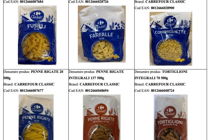 Carrefour a început o amplă campanie de retragere și rechemare de la consumatori a 12 sortimente de paste alimentare marca Carrefour Classic, fabricate de Ghigi 1870 S.p.A., indiferent de lot sau termen de valabilitate. Măsura a fost luată după ce s-a constatat că produsele nu aveau menționat pe etichetă posibilul conținut de muștar, un important alergen care poate provoca reacții severe persoanelor sensibile.