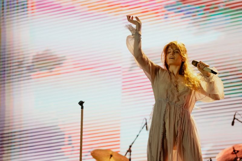 Florence + The Machine, poate cel mai așteptat headliner al acestei ediții a festivalului Electric Castle, a adunat în fața scenei principale cea mai mare parte din cei 55.000 de oameni prezenți, vineri, în festival. Cunoscută pentru sensibilitate, dar și sinceritatea cu care își recunoaște punctele vulnerabile, solista Florence Welch i-a rugat pe toți cei prezenți să lase telefoanele, să se bucure de momentul prezent, să privească la cei din jur, și, astfel, să simtă cât sunt de conectați unii la ceilalți și să trăiască show-ul alături de ea. „Mulțumesc, România, pentru locul acesta minunat, sunt foarte fericită că mă aflu aici”, a spus Florence în timpul concertului.