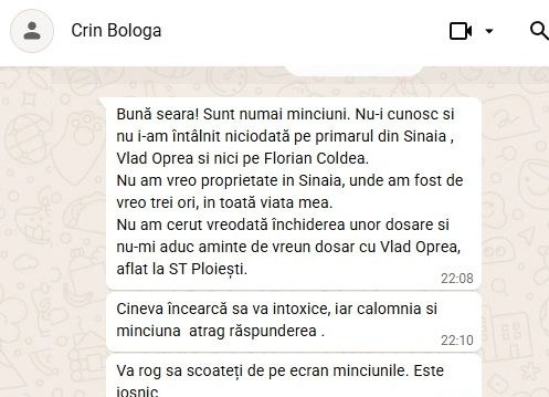 Fostul șef al DNA a venit cu o reacție după ce Realitatea Plus a prezentat o serie de controverse legate de mandatul său, inclusiv blocarea bruscă a dosarului penal al primarului din Sinaia, Vlad Oprea. Într-un punct de vedere transmis redacției, Crin Bologa susține că nu a cerut închiderea dosarului și respinge acuzația că ar deține o vilă în același complex cu edilul. Jurnaliștii Televiziunii Poporului i-au lansat fostului șef al DNA o provocare: să meargă împreună cu o echipă a televiziunii la Sinaia, întrucât mai mulți martori susțin că l-au văzut în zona cabanelor, alături de fostul ministru de Interne, Lucian Bode.