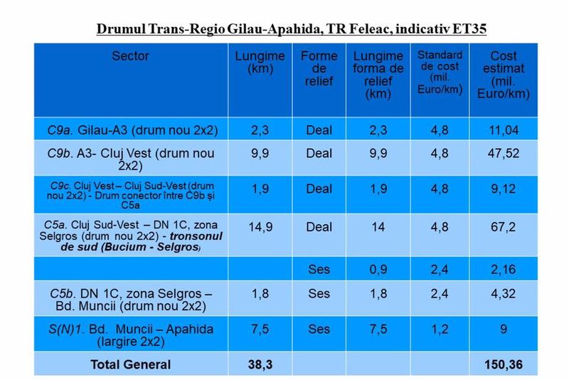 Contractul presupune realizarea serviciilor pentru două etape:ETAPA I — DRUM TRANSREGIO FELEAC TR35 — CENTURA METROPOLITANĂETAPA II — DRUM TRANSREGIO FELEAC TR35 — DRUMURI DE LEGĂTURĂ.În Master Planul General de Transport al României, Centura Metropolitană (Etapa I) este prevăzută cu 4 benzi de circulație cu o lungime totală aproximativă de 38,8 km, din care aproximativ 31,3 km reprezintă drum nou, iar 7,5 km modernizare drum existent sau drum nou (se va decide la aprobarea variantei de traseu). Drumurile de legătură (Etapa II) propuse conform PUG sunt în lungime totală aproximativă de 33,6 km drumuri noi sau modernizare de drumuri existente.Termenul de realizare a procedurii de întocmire a studiului de fezabilitate final Etapele I și II este de 12 luni.Potrivit lui Boc, având acest studiu, nimic nu va mai împiedica Ministerul Transporturilor să realizeze, până în 2023, această centură.Potrivit lui Boc, “această centură vine de la nodul de autostradă A3, pe malul Someșului, Florești, pasaj suprateran peste DN 1, după aceea din Mănăștur de la capătul linii de tramvai de la Bucium traversează Făgetul, Calea Turzii prin spate pe la Selgros, după care linie directă Bulevardul Muncii până la nodul de centură Apahida-Vâlcele”.Primăria Cluj-Napoca şi-a asumat realizarea studiilor pentru centura metropolitană. Primul pas a fost licitaţia pentru realizarea studiului de fezabilitate, a planului urbanistic zonal şi a proiectului de autorizaţie de construcţie. Jumătate din centura metropolitană este pe raza municipiului Cluj-Napoca, restul pe raza celorlalte comune. Proporţional, fiecare unitate administrativ-teritorială va suporta costul studiului de fezabilitate.