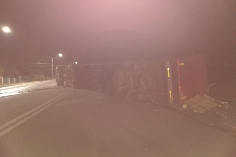 FOTO | Accident în Copăceni! Un autotren s-a răsturnat
