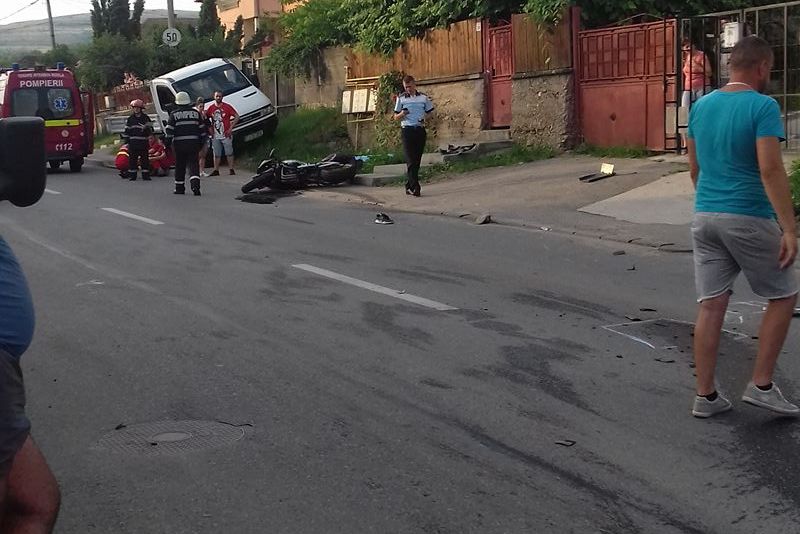 În această seara, în jurul orei 19:30, pe strada Oaşului din Cluj-Napoca s-a produs o coliziune între un autovehicul şi o motocicletă.