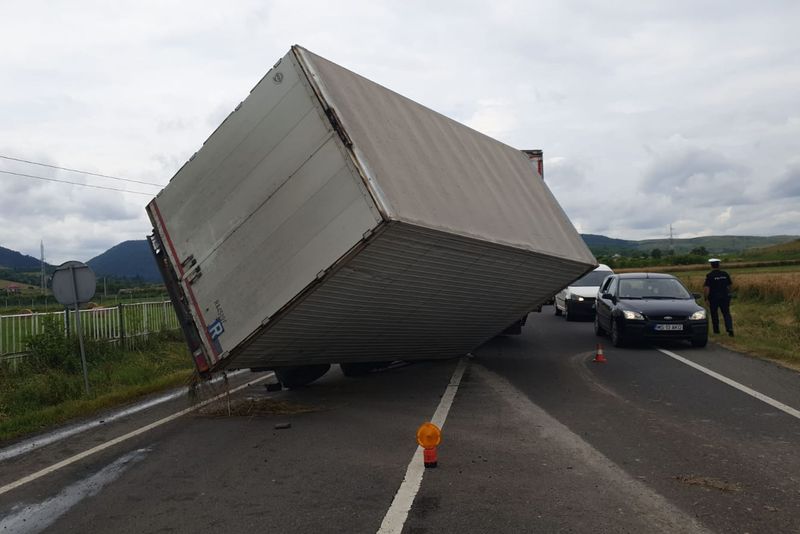 Şoferul unui autoturism care se deplasa spre Cluj-Napoca a pătruns pe sensul opus de mers și a întrat în coliziune cu un autotren care se deplasa din sensul opus.În urma impactului autoturismul s-a răsturnat în afara părții carosabile, iar remorca de la autotren a rămas suspendată.De asemenea, o persoană a fost rănită.Sensul de mers Oradea - Cluj este blocat.