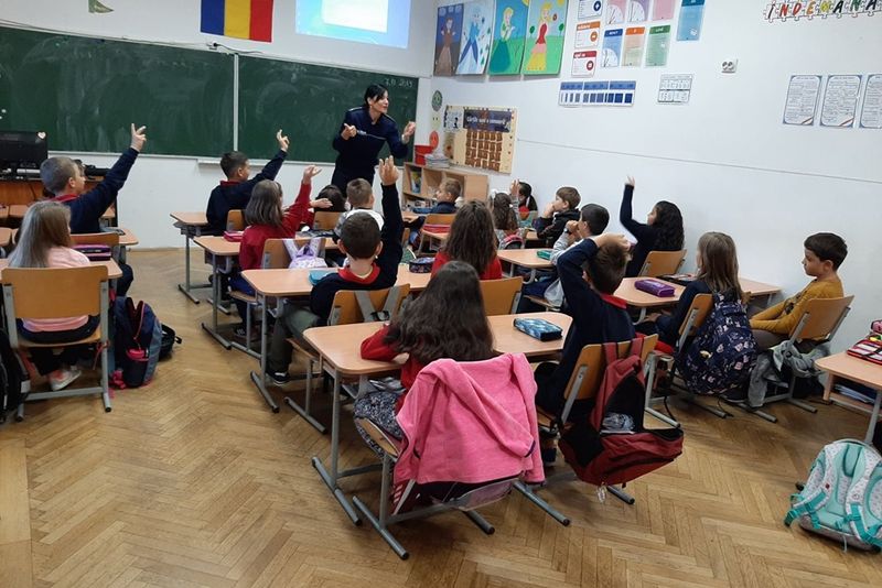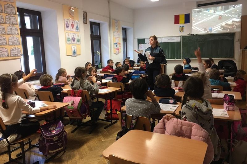 Politiştii din cadrul Biroului de Analiză şi Prevenire a Criminalităţii Cluj au fost alături de elevii Școala Gimnaziale Ioan Bob din Cluj-Napoca, județul Cluj.