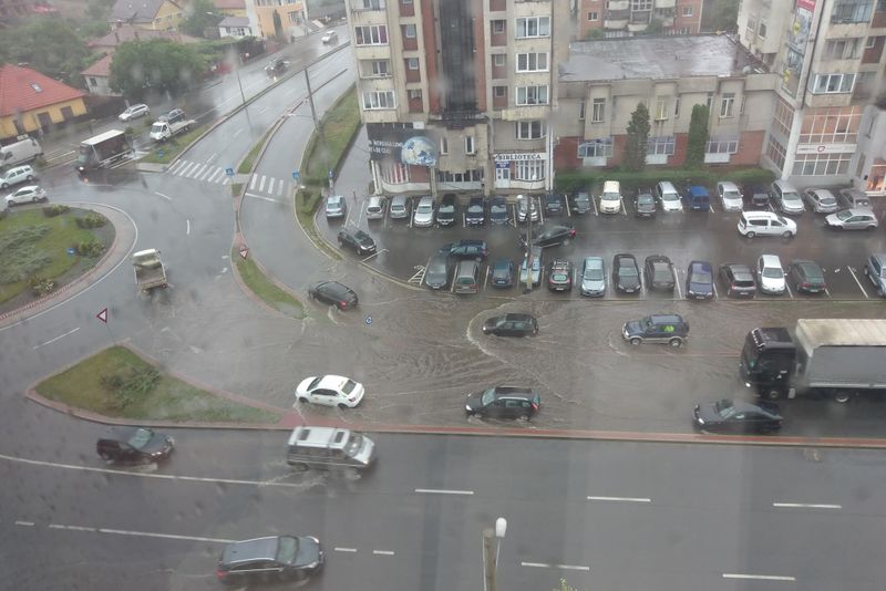 Codul portocaliu anunțat de către Agenția Națională de Meteorologie a adus la Cluj-Napoca o furtună ce a inundat mai multe străzi și subsoluri în doar 30 de minute. S-au înregistrat cantități de 35-40 de litri/metru pătrat, iar asta s-a văzut mai ales pe străzile din oraș. Pe Calea Turzii, traficul a fost blocat după ce capacele canalelor au sărit, iar mai multe porțiuni au fost inundate.