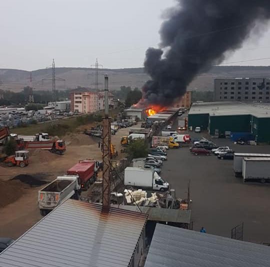 ACTUALIZARE: Incendiul este sub control. In aceste momente se lucrează pentru lichidarea focarelor care ard mocnit. Au fost afectate mai multe depozite in care funcționau un atelier auto, garaje si anexe în care erau depozitate lucruri personale.