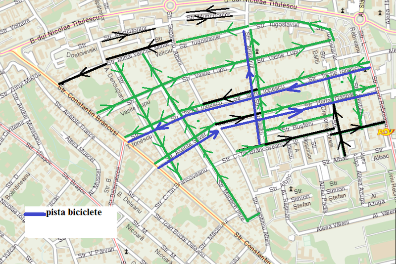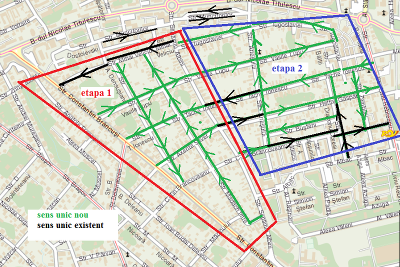 Pe străzile pe care se vor institui sensuri unice de circulație se vor lua în evidență locuri de parcare pe partea carosabilă, iar pe str. Axente Sever și Tache Ionescu se vor realiza și piste de biciclete.Va urma apoi etapa a 2-a, care va cuprinde perimetrul străzilor Septimiu Albini - C-tin Brâncoveanu – Liviu Rebreanu/Iugoslaviei.