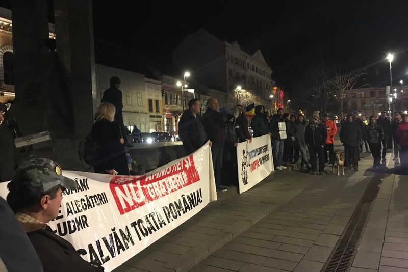 Un nou protest a avut loc ieri seară în centrul Clujului. Oamenii s-au strâns în zona Clopotului Memorandiștilor, de pe Bulevardul Eroilor, lângă sediul PSD.Ei au scandal lozinci precum ”PSD, ciuma roșie!”, ”Abrogați și apoi plecați” sau ”Demisia”. După o oră, protestatarii au plecat în marș spre Prefectura Cluj, pentru a-și exprima nemulțumirea față de modificarea legilor Justiției. În zona Pieței Avram Iancu, ei au scandat ”Magistrați, rezistați”. După ce au pichetat Prefectura, protestarii au revenit în zona Pieței Unirii, iar protestul s-a încheiat fără incidente.